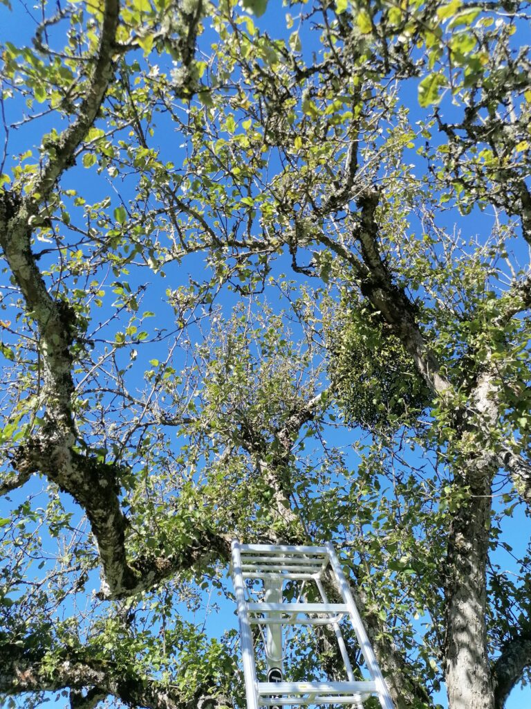Din trädgård har 3 stora äppelträd som fått växa fritt under ett antal år. Det är många tjocka grenar som växer rakt upp och det ser allmänt risigt ut. Träden behöver varsamt restaureras över tid och detta året kan bli första av 3-4 år.
